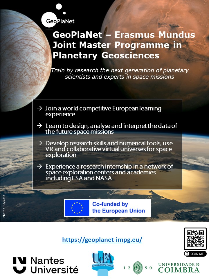 - Favoriser l'innovation en testant et en mettant en œuvre des pratiques innovantes dans le domaine de l'éducation telles que la Réalité Virtuelle et de nouveaux modules interdisciplinaires en géosciences planétaires qui enrichiront les diplômes internationaux existants